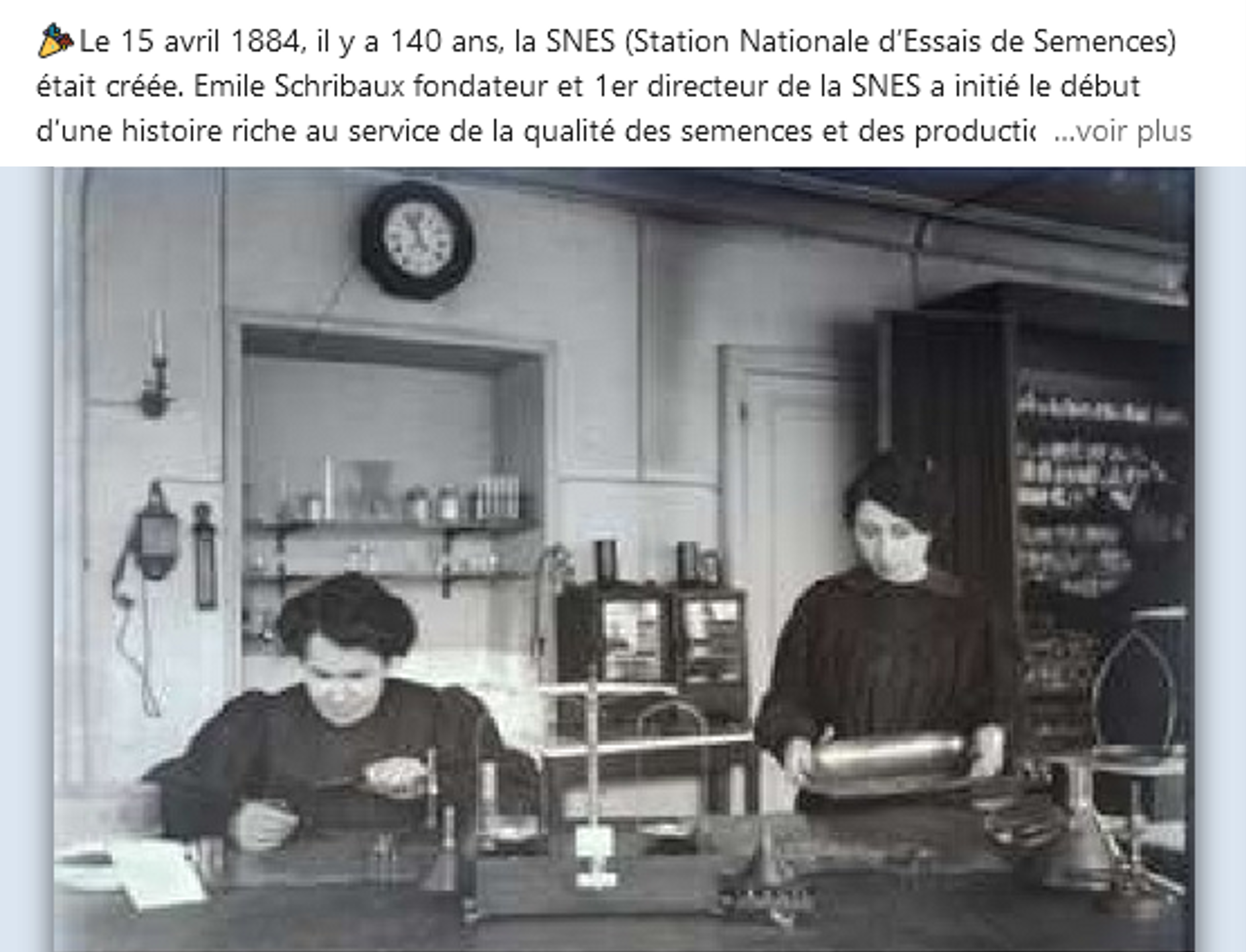 La Station Nationale d’Essais de Semences (SNES) a été créée en 1884 et fête donc ses 140 ans en 2024. Emile Schribaux, le 1er directeur de la SNES a initié le début d’une histoire riche au service de la qualité des semences et donc des productions agricoles. Au fil des années et des étapes, les filières se sont structurées et les connaissances et la compréhension du fonctionnement des semences ont aussi progressé. La quête de cette qualité est constante et continue car les cultures sont liées à leur contexte (environnemental, climatique, culturel, économique …) et aux outils et méthodes disponibles pour toujours mieux évaluer les comportements et la qualité des semences.